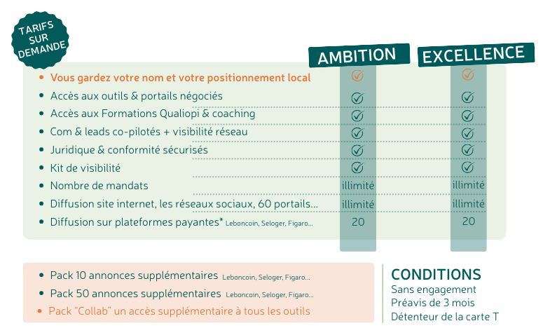 * Dans la limite de 20 mandats sur les sites payants (Leboncoin, SeLoger, Figaro) – Mandat supplémentaire 39€ht